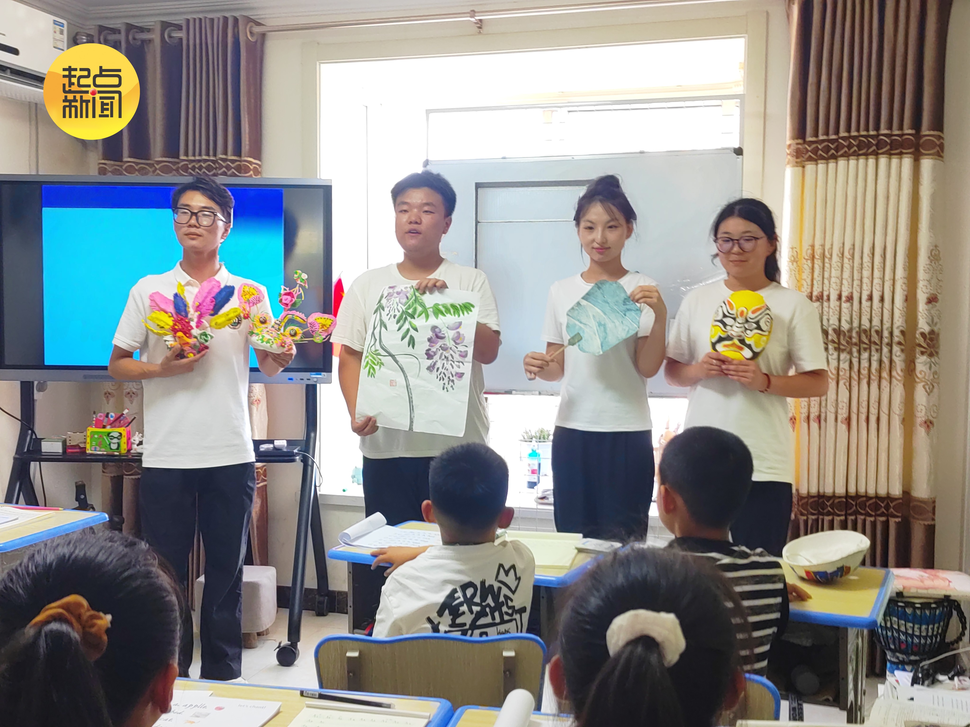 活动尾声,实践团将采撷的非遗成果带入富县社区。成员们展示脸谱、国画、熏画、花馍等作品,以“说唱脸谱”点燃孩子兴趣,并化身讲解员阐释文化内涵。随后,他们组织趣味剪纸课,讲述渊源、分组指导。当童趣剪纸在孩子们指尖绽放,文化根芽也悄然植根心田。