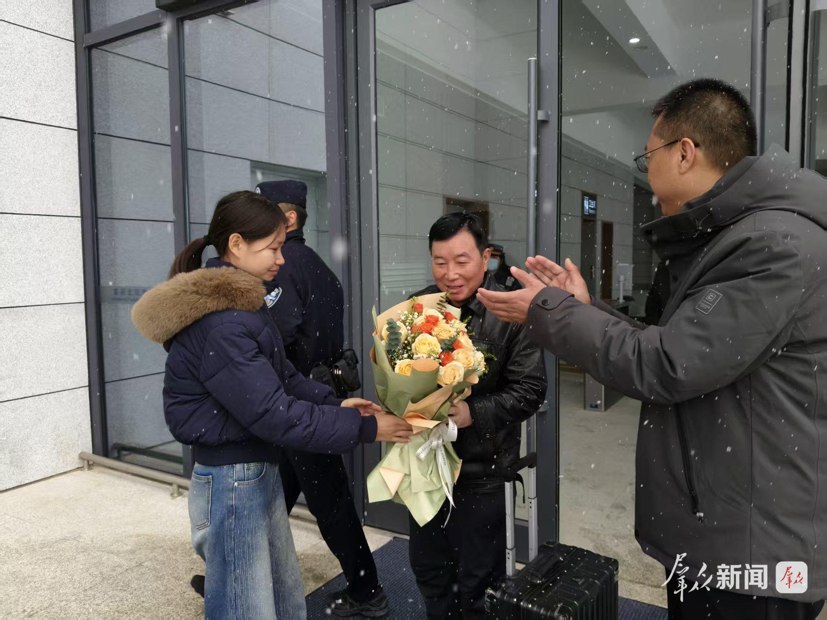 12月31日,瑞雪为鄜州大地披上银装,富县高铁北站出口外早早聚起等候的人群。上午11时40分许,C9313次列车出站的某名旅客刚一现身,人群中顿时响起了热烈的掌声与“好样的!”“富县人的骄傲!”的欢呼声。原来,这是被新疆维吾尔自治区伊宁市人民政府授予“见义勇为先进个人”荣誉称号的富县退休干部呼新魁载誉归来。